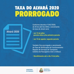 Primeiro vencimento da taxa de alvará é no próximo dia 13