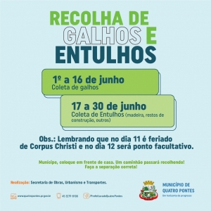 Secretaria de Obras, Urbanismo e Transportes inicia hoje recolha de entulhos