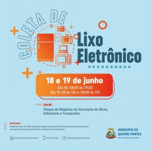 Coleta de lixo eletrônico inicia hoje à tarde em Quatro Pontes