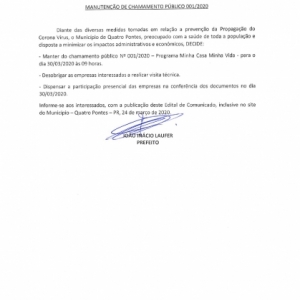 Edital de Comunicado - Manutenção de Chamamento Público 001/2020