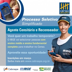 IBGE abre mais de 200 mil vagas para o Censo 2020