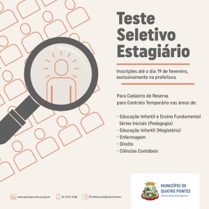 Inscrições ao teste seletivo de estagiário encerram hoje em Quatro Pontes