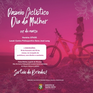 Quatro Pontes realizará Passeio Ciclístico Dia da Mulher