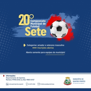 Congresso técnico do 20º Campeonato Municipal de Futebol Sete acontece hoje