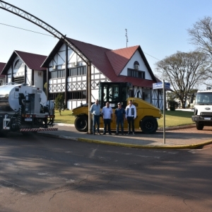 Quatro Pontes recebe maquinários para executar asfalto sobre pedras irregulares