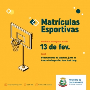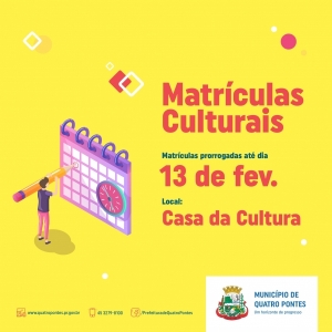 Quatro Pontes prorroga matrículas culturais e esportivas até quarta-feira