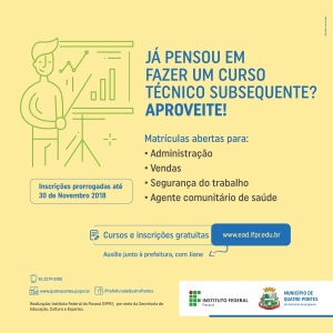 Inscrições para cursos técnicos subsequentes seguem abertas até dia 30