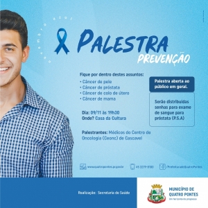 PALESTRA SOBRE CÂNCERES MARCARÁ NOVEMBRO AZUL EM QUATRO PONTES