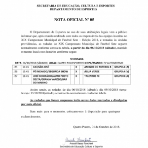 CAMPEONATO DE FUTEBOL SETE DE QUATRO PONTES RETOMA RODADA NO SÁBADO