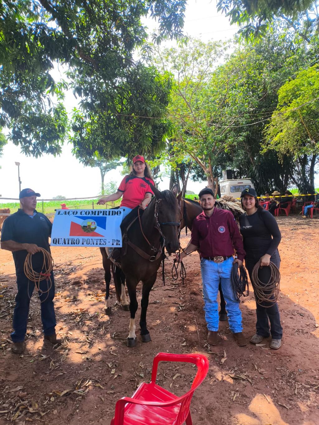 Durante a programação, os representantes do município participaram das atividades de cavalgada e das provas de laço, integrando a programação esportiva do evento, que reuniu competidores da região.