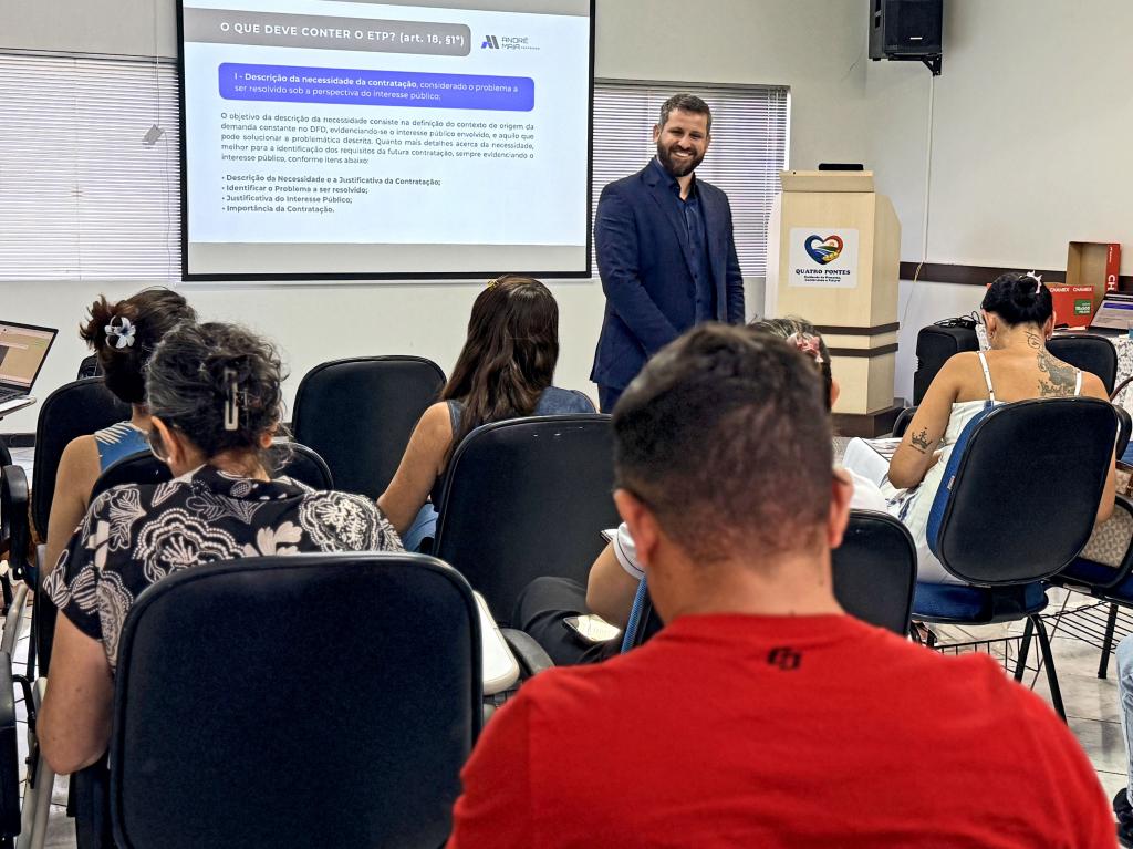 Quatro Pontes, 13 de março de 2026 – Servidores da Prefeitura de Quatro Pontes participaram, nos dias 11 e 12 de março, de um treinamento voltado ao Estudo Técnico Preliminar (ETP) e aos principais instrumentos de planejamento previstos na nova Lei de Licitações e Contratos Administrativos (Lei nº 14.133/2021). A capacitação foi realizada no auditório da Associação Comercial e Empresarial de Quatro Pontes (Aciquap) e reuniu 24 servidores de diferentes secretarias municipais.