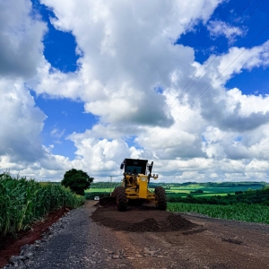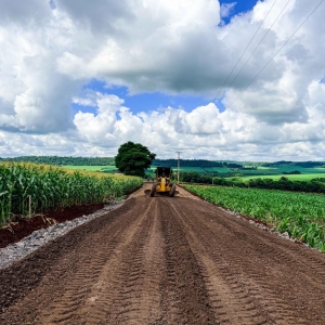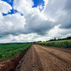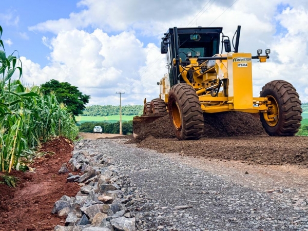 Quatro Pontes, 12 de março de 2026 – A obra de pavimentação asfáltica da estrada rural da Linha Flor da Serra já está em fase de execução no interior de Quatro Pontes. Na manhã desta quarta-feira (12), equipes trabalhavam na etapa inicial de fundação da via, com a atuação de maquinário realizando serviços de preparação da base e sub-base da obra. Até o momento, aproximadamente 350 metros do trecho já receberam intervenção.