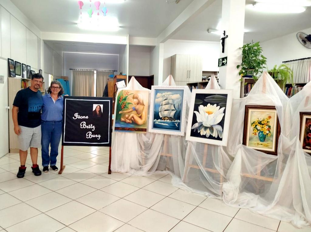 Quatro Pontes, 14 de abril de 2026 – A Biblioteca Municipal, localizada junto à Escola Dona Leopoldina, em Quatro Pontes, recebe desde o dia 7 de abril a exposição de obras da artista local Ivone Britz Burg.