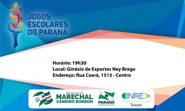 Às 19h30 de amanhã (18) será realizada a abertura oficial dos 65º Jogos Escolares do Paraná - Fase Regional, que acontecerão em Marechal Cândido Rondon. O ato com desfile das delegações e apresentações, como do grupo de dança corporal da Unioeste e do grupo Animadoras de Torcida Martin Luther, ocorrerão no Ginásio de Esportes Ney Braga.