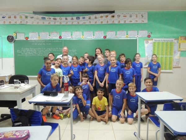 Buscando um melhor aprendizado e compreensão, os alunos do 4º ano “A” da Escola Municipal Dona Leopoldina de Quatro Pontes têm realizado diversas atividades a partir do projeto “Conhecendo o município”. Recentemente, os educandos, juntamente com a professora Claudete Montipo, participaram de encontro com o primeiro prefeito do município, Antonio Rudi Leobet, que falou sobre a emancipação político-administrativa de Quatro Pontes e a respeito da experiência como mandatário.