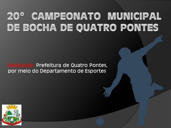 Hoje (13), o 3º e 4º lugar no 20º Campeonato Municipal de Bocha de Quatro Pontes, promovido pelo Departamento de Esportes, será disputado entre Agropecuária Quatro Pontes/Eletropontes e São José A. A partida está marcada para às 19h15, tendo por local a Linha Flor da Serra. O mando é da Agropecuária Quatro Pontes/Eletropontes.