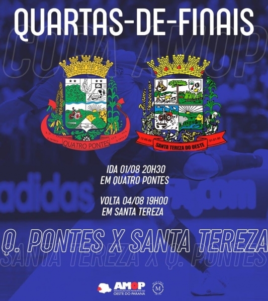 Com a classificação nas quartas de final da 2ª Copa Amop de Futsal Masculino, o novo desafio de Quatro Pontes é contra Santa Tereza do Oeste. O jogo de ida está marcado para quarta-feira (1º), às 20h30, no Ginásio de Esportes Paulinho Hoffmann.