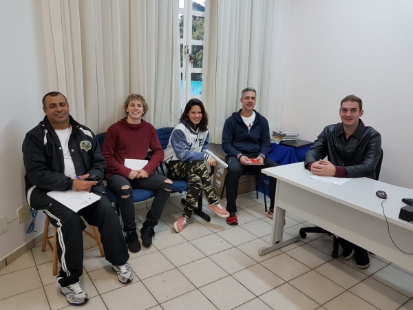 O Departamento de Esportes de Quatro Pontes realizou ontem (08) a primeira reunião para início da elaboração do cronograma de atividades e horários que integrarão o projeto estadual “Esporte para toda a vida”. Para isso, estiveram reunidos o diretor Davi Boufleuher, os professores Juliano West Walker e Edevaldo de Moura (Mico), bem como os estagiários Andrei Juliano Anschau e Nicollly Maria Neuberger da Silva.