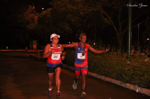 Os quatropontenses Edivaldo Quintino da Silva (Corinthiano) e Margarida Hilda Ludio da Silva competiram na etapa da primavera da Corrida 4 Estações, no Lago Municipal de Cascavel.