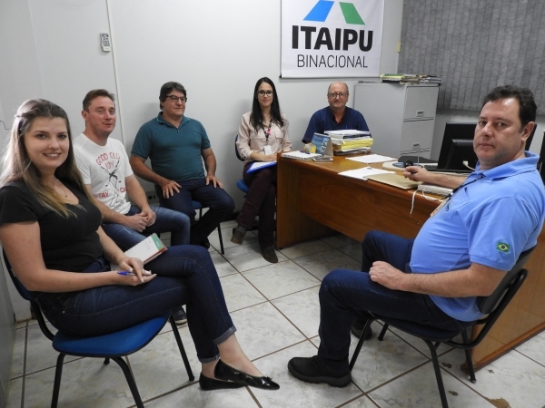 Uma reunião referente ao convênio com a Itaipu Binacional para a ampliação, reforma e construção de muro no barracão da Associação Quatropontense de Catadores (AQC) aconteceu na semana passada na Prefeitura de Quatro Pontes. A pauta foi discutida entre o secretário de Desenvolvimento Econômico, Pedro Becker, os engenheiros civis da prefeitura, Heloisa Fernanda Hitz e Jeferson Martini, e Renata Saviato Dias, Sadi Ferronato e Lorivan Webber, representando a Itaipu Binacional.
