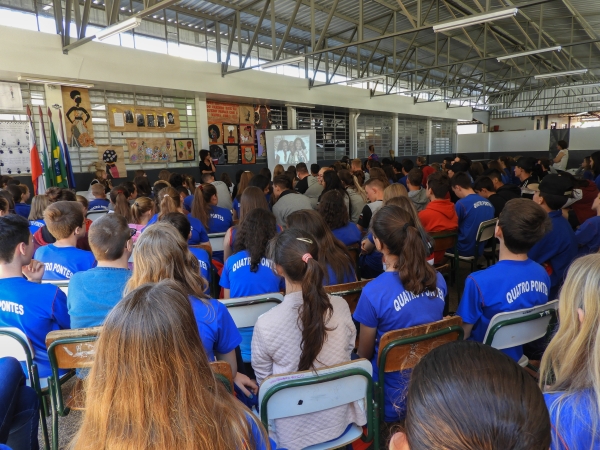 Em homenagem ao Dia da Consciência Negra, comemorado hoje (20), houve teatro no Colégio Estadual Quatro Pontes. A peça foi encenada para todas as turmas da manhã e da tarde, a fim de que os alunos tenham uma visão mais ampla sobre o assunto.