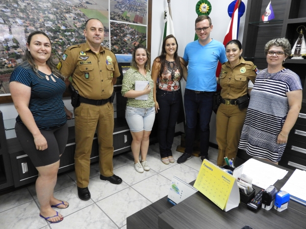 Mais 43 alunos dos 5º anos da Escola Municipal Dona Leopoldina serão assistidos pelo Programa Educacional de Resistência às Drogas e à Violência (Proerd), em Quatro Pontes. A parceria foi renovada ontem (31) em reunião no gabinete, quando os ajustes das aulas foram debatidos entre o prefeito em exercício, Tiago Hansel, a secretária de Educação, Cultura e Esportes, Araceli Basso Tauchert, a diretora da escola, Scheila Andreia Lang Kussmirski, representantes da equipe pedagógica, Neliane C. G. Nied e Edivanete de Luna Sbardelatti, a soldado do Batalhão de Patrulha Escolar Comunitária, Érica Rodrigues, e o sargento do 19º Batalhão da Polícia Militar, Delcio José Tonelli.