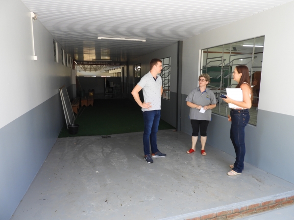 A fim de acompanhar o andamento das obras, o prefeito em exercício, Tiago Hansel, verificou ontem (31) as reformas promovidas na Escola Municipal Dona Leopoldina e no Centro Municipal de Educação Infantil (Cmei) Cantinho Feliz, por meio da Secretaria de Educação, Cultura e Esportes, sendo que a secretária Araceli Basso Tauchert e a diretora da escola, Scheila Andreia Lang Kussmirski, lhe acompanharam na visita.