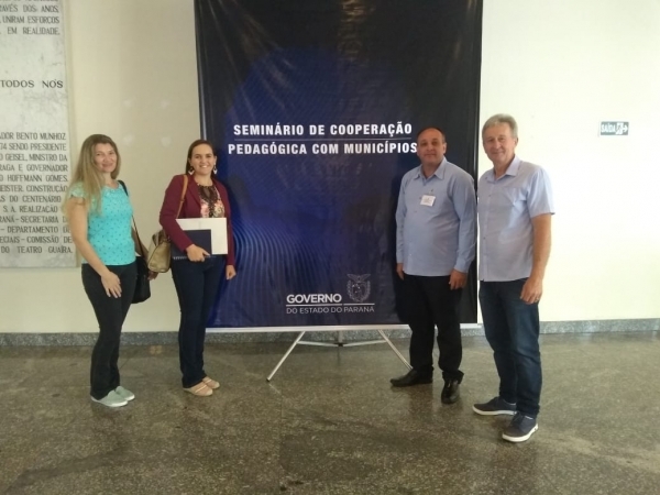 Na última quarta-feira (20), no Teatro Guaíra, em Curitiba, Quatro Pontes participou do Seminário de Cooperação Pedagógica com Municípios, estando representado pelo prefeito João Laufer, bem como a secretária de Educação, Cultura e Esportes, Araceli Basso Tauchert, a diretora de Fomento à Industria, Comércio, Serviços e Turismo, Jiane Spengler, e o secretário de Saúde, Marco Antônio Wickert.