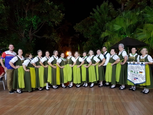 Coordenado pelo professor Marcio Cristiano da Silva, o grupo de dança alemã “Amigas da Dança”, formado por 20 mulheres da terceira idade de Quatro Pontes, esteve em Marcelino Ramos, com o acompanhamento, inclusive, do diretor do Departamento de Cultura, Davi Boufleuher, na última sexta-feira (22) à noite. No referido município, elas realizaram uma apresentação para em torno de 100 pessoas.