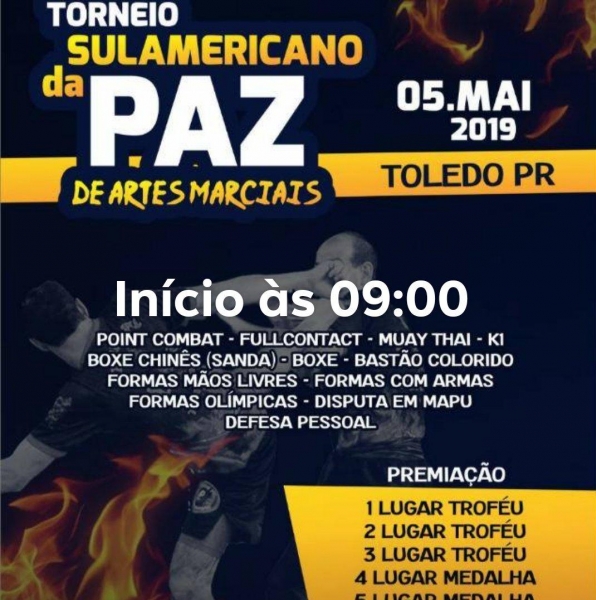 Representando Quatro Pontes, 47 atletas participarão, com o apoio do Departamento de Esportes, do Torneio Sulamericano da Paz de Artes Marciais, em Toledo. O início da competição está marcado para as 09 horas de domingo (05) e engloba as modalidades de point combat, fullcontact, muay thai, k1, boxe chinês (sanda), boxe, bastão colorido, formas mãos livres, formas com armas, formas olímpicas, disputa em mapu e defesa pessoal.