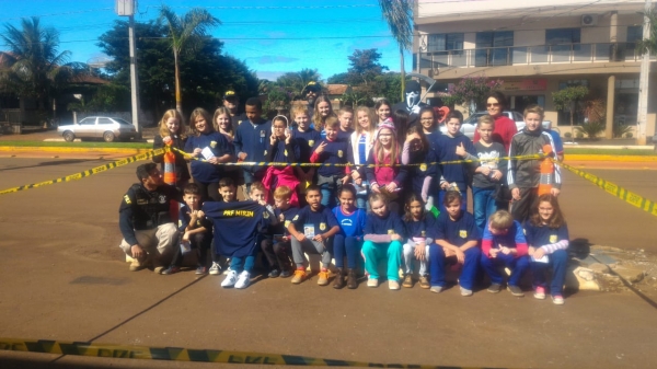 A ação integra o projeto PRF Mirim, coordenado pelo policial rodoviário federal, Allan Ricardo, do posto da PRF local, e a campanha Maio Amarelo 2019, intitulada “Quando você não olha para as Leis de Trânsito, você dirige às cegas”, Departamento de Trânsito do Paraná (Detran-PR). Também participaram da conscientização a secretária de Educação, Cultura e Esportes, Araceli Basso Tauchert, prefeito João Laufer, diretora da escola, Scheila Andreia Lang Kussmirski, e a professora Leila Adams.