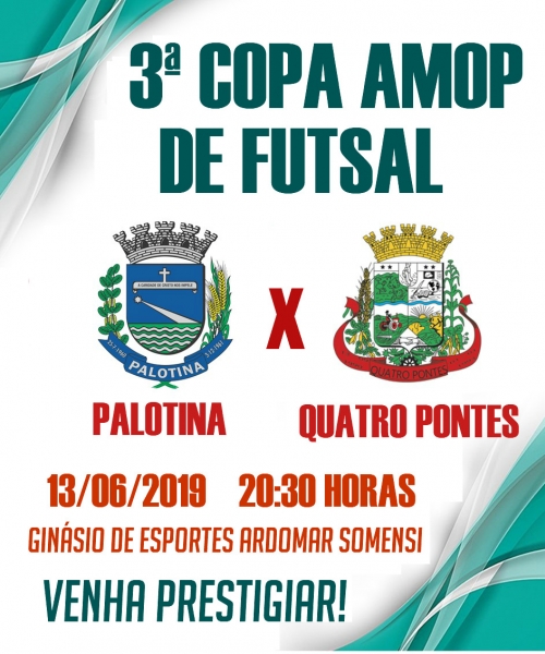 O novo desafio de Quatro Pontes na 3ª Copa Amop de Futsal é nesta quinta-feira (13) contra Palotina. A partida é válida pela 4ª rodada e acontecerá no Ginásio de Esportes Ardomar Somensi, na casa do time adversário, com início às 20h30.