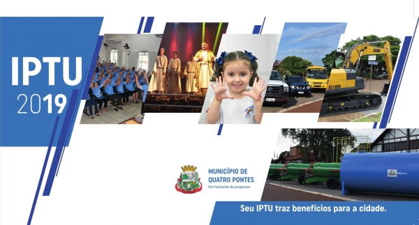 Os contribuintes de Quatro Pontes que ainda não retiraram o carnê do Imposto Predial e Territorial Urbano (IPTU) 2019, exclusivamente na prefeitura, devem fazê-lo durante esta semana, pois a cota única e/ou a primeira parcela vencem na sexta-feira (12). A entrega está sendo realizada pelo Setor de Tributação da Secretaria de Finanças.