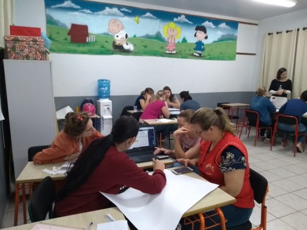 Na noite de ontem (23), na Escola Municipal Dona Leopoldina, os educadores infantis do Centro Municipal de Educação Infantil (Cmei) Cantinho Feliz, de Quatro Pontes, receberam uma formação continuada, com o apoio da Secretaria de Educação, Cultura e Esportes.