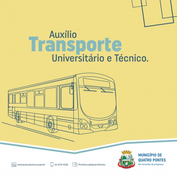 Termina sexta-feira (30) o prazo para protocolar o requerimento do auxílio transporte universitário e técnico na Prefeitura de Quatro Pontes. O benefício é oferecido pela Secretaria de Educação, Cultura e Esportes para quem frequenta cursos de graduação ou de tecnologia em outros municípios.