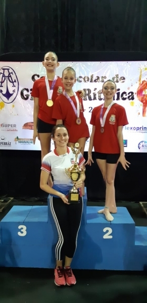 Ensaiadas e coreografadas pela professora Quessila Baumgart Zago, as ginastas Maria Ames Gomes, Ana Flávia Zelenski e Camili Reckziegiel, de Quatro Pontes, conquistaram três títulos na Copa Escolar de Ginástica Rítmica de Marialva, realizada nos dias 13, 14 e 15 deste mês. Competindo na modalidade tapete, Maria ficou campeã na categoria aberta. Ana Flávia conquistou o 2º lugar na categoria pré-infantil e a mesma posição foi obtida por Camili na categoria aberta.