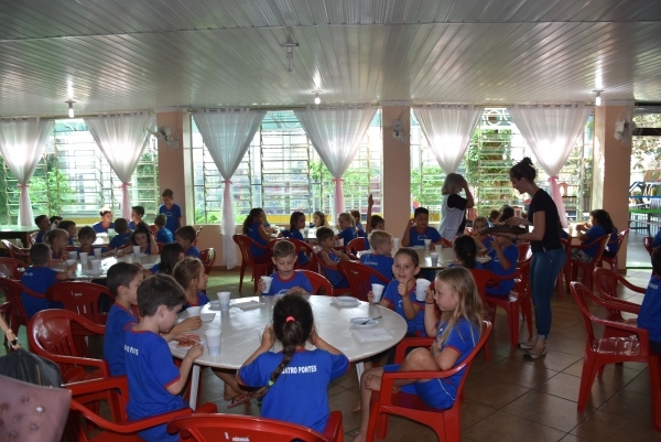 Os alunos do 1º ao 5º ano da Escola Municipal Dona Leopoldina, de Quatro Pontes, já iniciaram as comemorações alusivas ao Dia das Crianças, que será celebrado no sábado (12). Divididos em dois dias, todos os educandos foram à Pizzaria BNH2, em Marechal Cândido Rondon, na semana passada. Eles estiveram acompanhados de professoras, direção escolar e da secretária de Educação, Cultura e Esportes, Araceli Basso Tauchert.