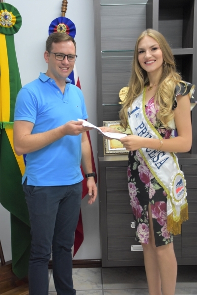 Intitulado “Lição solidária”, projeto social foi lançado pela 1ª Princesa de Quatro Pontes, Gabriela Milena Dorner Gartner, que será a representante do município no Miss Paraná 2020, evento que ocorrerá no dia 20 de abril, em Maringá. A proposta foi entregue ao prefeito em exercício, Tiago Hansel, nesta quinta-feira (09) em visita ao gabinete.