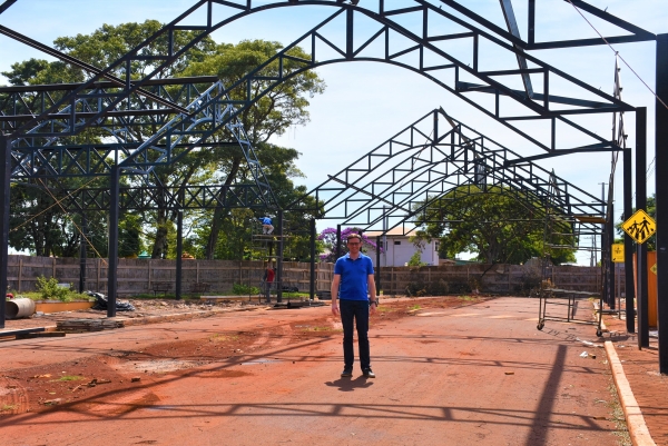 Após esta fase, a Prespontes Serviços Ltda., vencedora do processo licitatório, executou a estrutura dos pilares. A área a construir é de 1.305,48 metros quadrados e receberá, assim, estrutura metálica tubular, sendo inspirada no estilo germânico, mas com caráter contemporâneo, além de material translúcido, através de tesouras e treliças. O espaço será utilizado como feira e para eventos ao ar livre.
