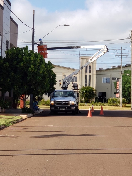 Com o propósito de melhorar a qualidade da iluminação pública no Jardim Primavera I e II, ofertando mais segurança ao munícipe e conforto visual, a Prefeitura de Quatro Pontes, por meio da Secretaria de Obras, Urbanismo e Transportes, está realizando serviços de substituição das luminárias públicas antigas. Trata-se da troca de lâmpadas vapor de sódio 70W por lâmpadas de LED 150W.