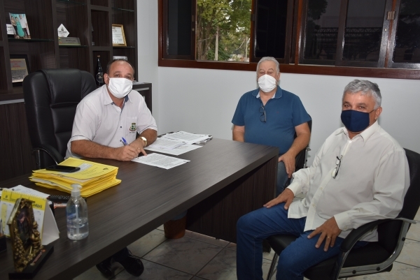 Na manhã de hoje (12), junto ao gabinete, o Executivo de Quatro Pontes e o Estado do Paraná, por meio da Secretaria de Estado da Agricultura e do Abastecimento (SEAB), celebraram convênio para transferência de recursos financeiros para a aquisição de um veículo utilitário no valor de R$ 60 mil, cabendo à SEAB o repasse de R$ 50 mil, com a contrapartida do município de R$ 10 mil. O termo de convênio foi assinado pelo prefeito João Inácio Laufer, além do secretário de Desenvolvimento Econômico, Rudi Kuns, e do chefe do Núcleo Regional da SEAB, Paulo Salesse.