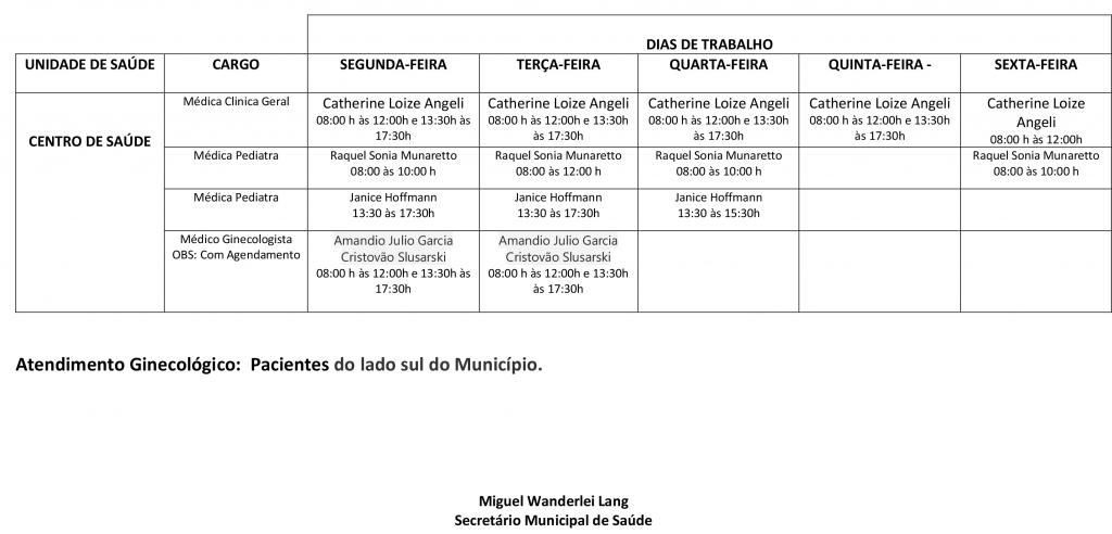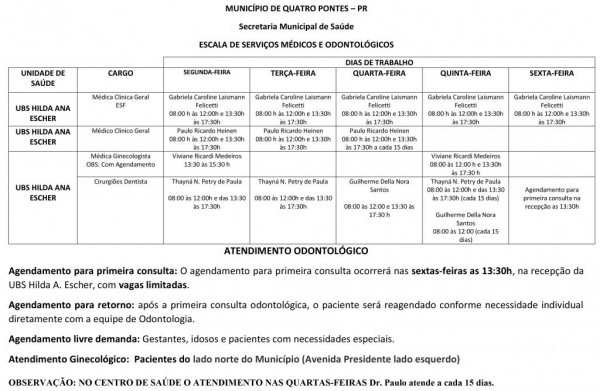 Escala de horarios médicos e odontológicos atualizada 23-07-2024
